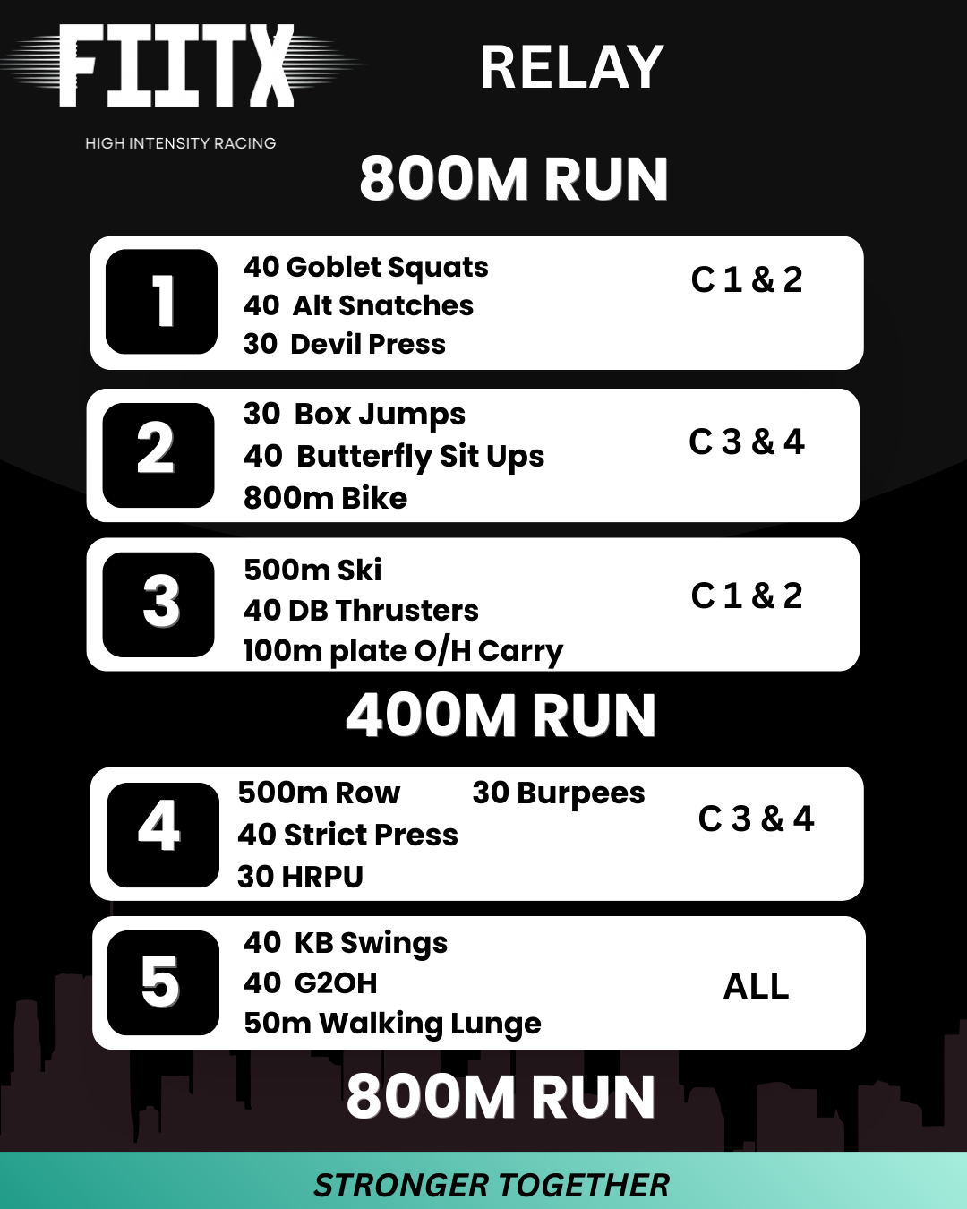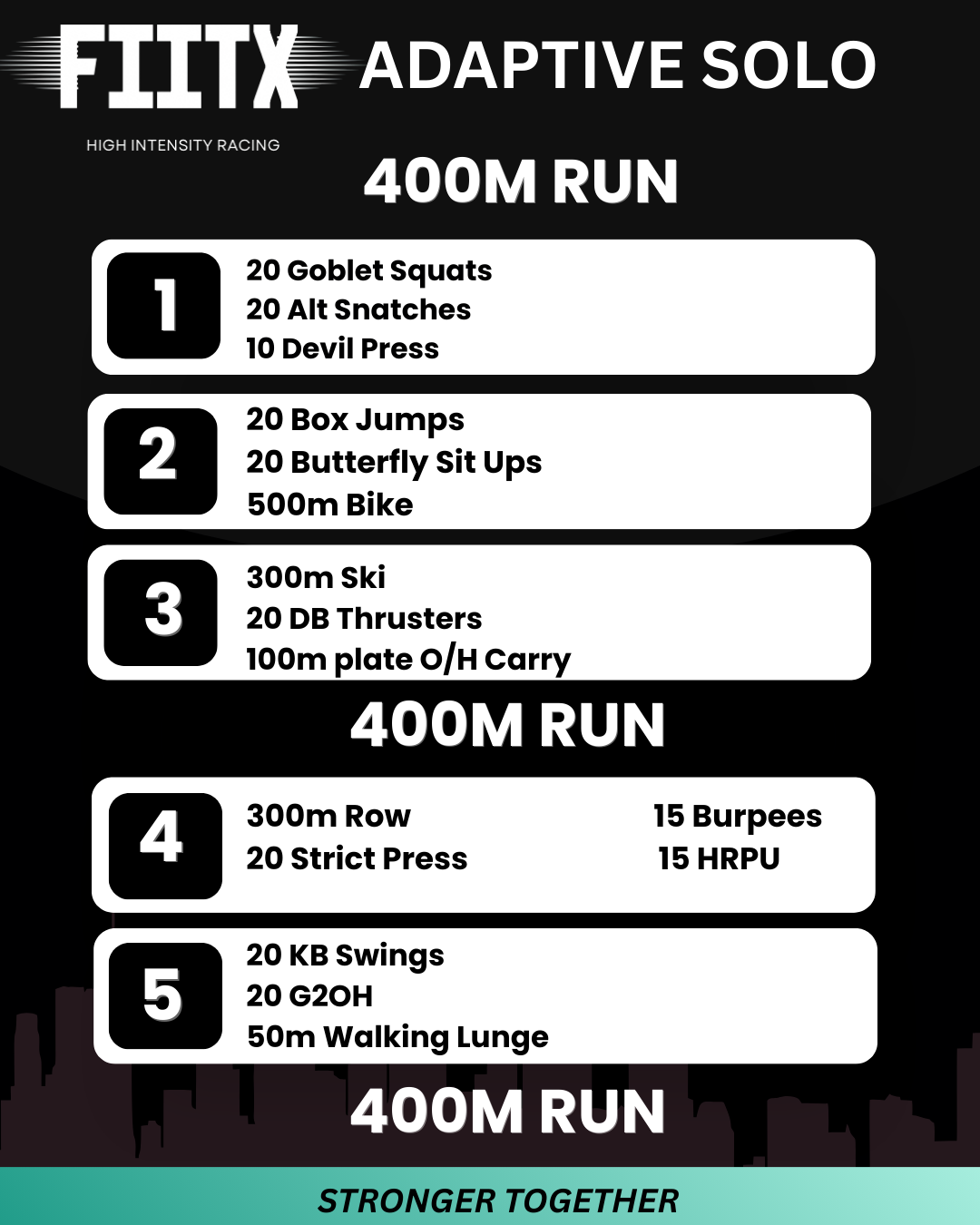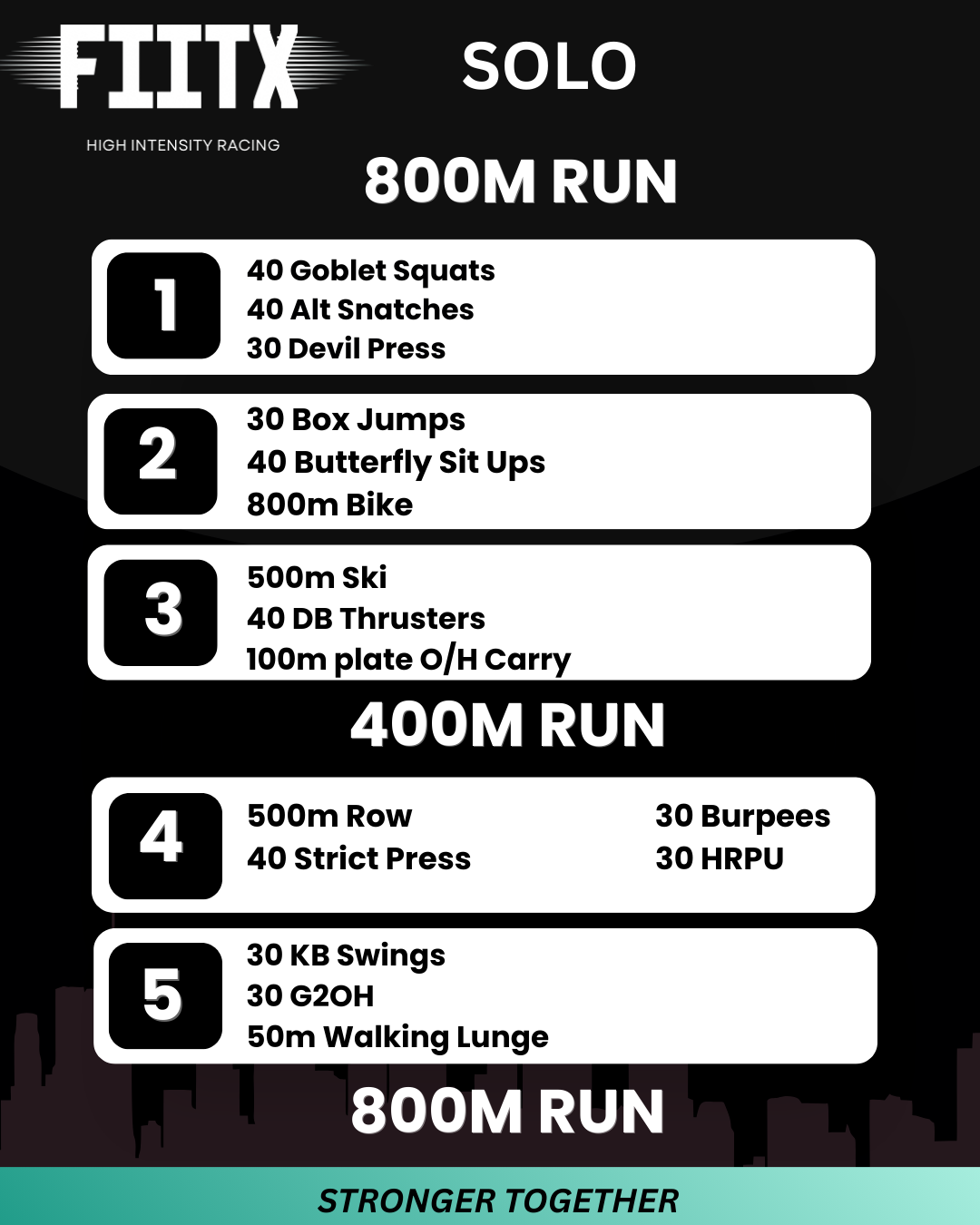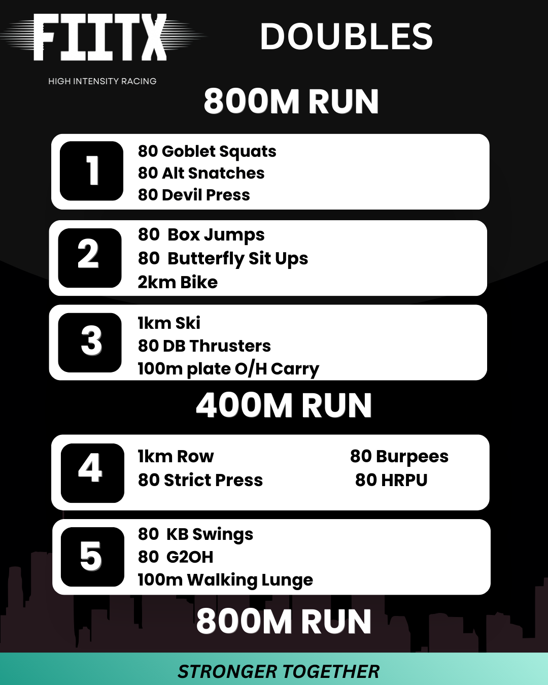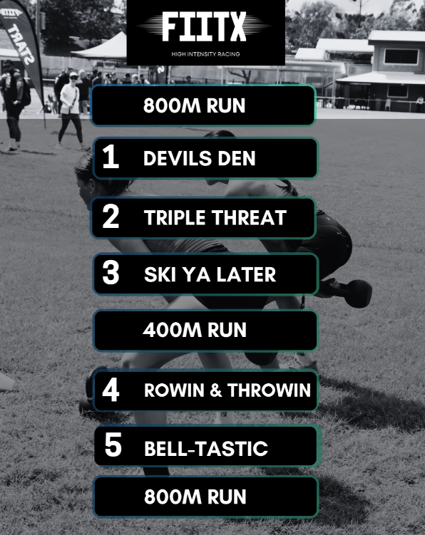 The race begins with an 800m run that leads competitors into the heart of the event: five brutal, high-energy arenas packed with functional fitness challenges. Competitors support each other, cheer each other on, and move through each arena at their own pace. A mid-race 400m run resets the focus before competitors tackle the final two arenas and launch into the closing 800m run to the finish, where the FIITX crew will be waiting to celebrate every single athlete.