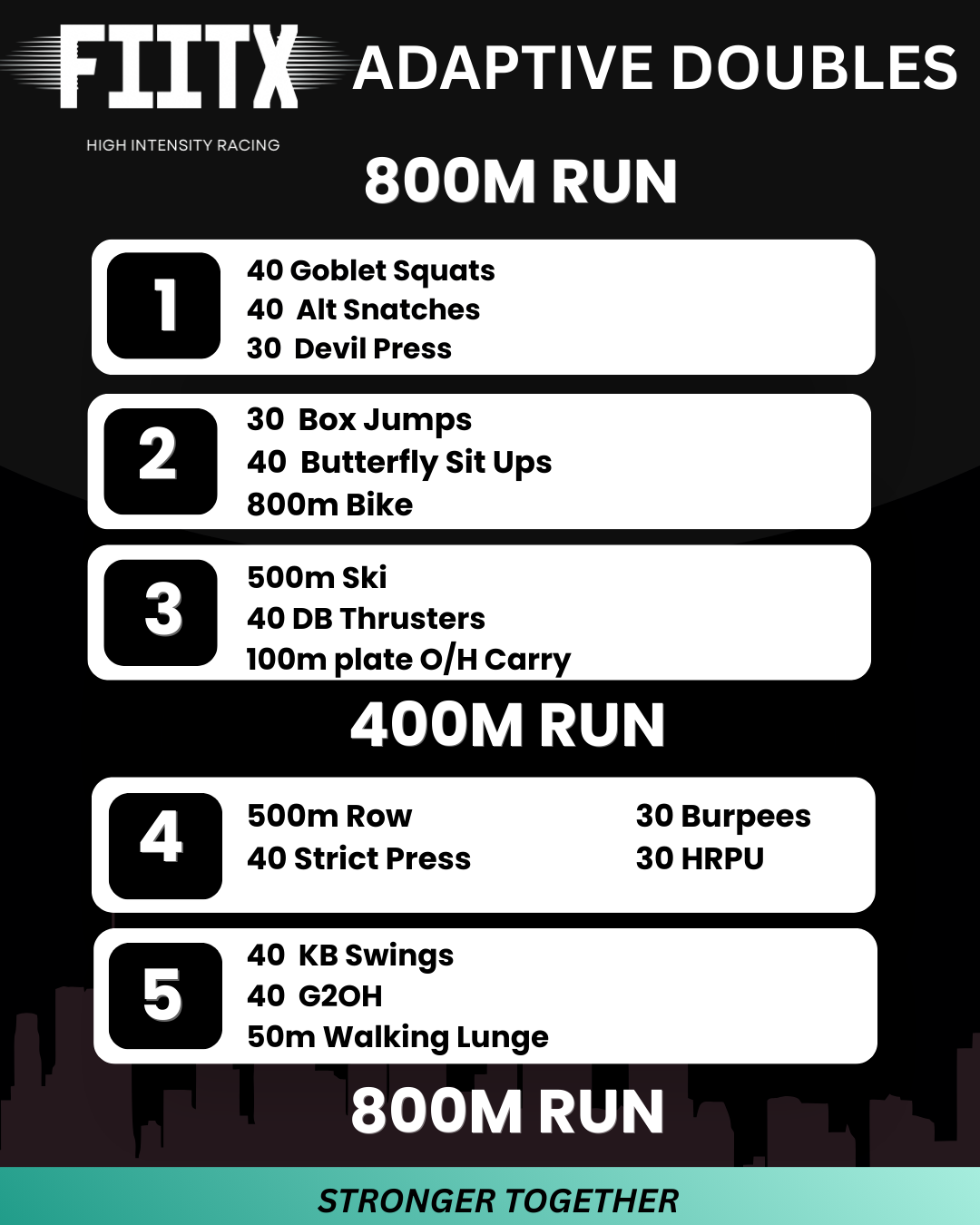 With divisions for Solo, Adaptive Solo, Doubles, Adaptive Doubles, and Relay teams, FIITX offers a place for all abilities, all backgrounds, and all approaches. Whether you're chasing a personal milestone, showing up for your team, or simply proving to yourself that you can, FIITX is your space. Inclusive, empowering, and built on community. This is fitness racing for everyone.